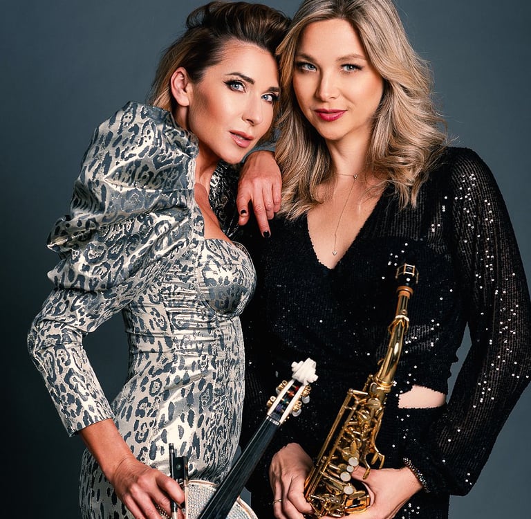 Zwei Melodieinstrumente, eine besondere Chemie. Playadia verbindet den warmen Klang des Saxophons mit der Strahlkraft einer Geige — elegant, eindrucksvoll, unvergesslich.