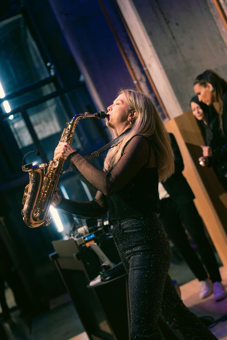 Erleben Sie die Saxophonistin und DJane aus München live bei Ihrem Event, Galadinner oder Familienfest!